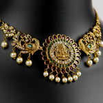 The Jeena Temple Choker Set is a celebration of heritage and artistry. Designed for versatility, it can be paired with our long temple necklace for a layered, regal look or worn solo for a statement of refined simplicity. Perfect for bridal, festive, or ceremonial occasions, it carries the charm of tradition with a touch of modern grace.