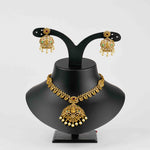 A radiant tribute to tradition, the Sri Vaibhavi Necklace Set features rich gold tones, divine motifs, and vibrant gemstone accents. Paired with matching earrings, it’s perfect for weddings and sacred occasions—bringing spiritual grace and regal beauty to every celebration.